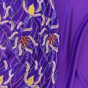 Pembe ve gri tonların zarif uyumuyla tasarlanan İpek Emprime Saten kumaş, parlak yüzeyi ve akıcı dokusuyla elbise, bluz ve özel tasarımlar için ideal bir seçimdir.
